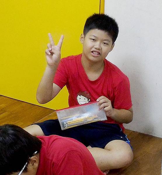 記得一次上課,皓全跟好麻吉一組。第一回合結束,好麻吉因為失敗與接續遊戲的設置,非常憤怒跑到教室一旁坐著、氣悶地環手抱胸,氣呼呼在一旁不斷出言看衰接下來整組的走勢。